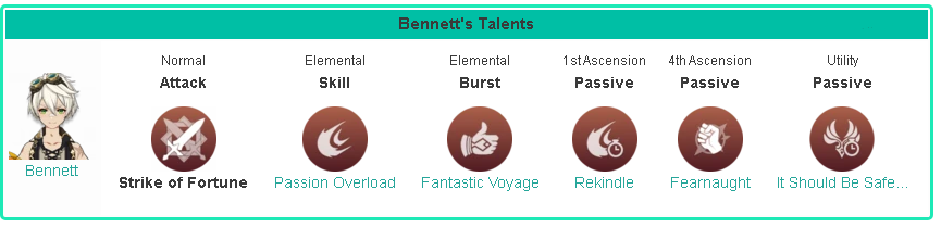 اگر HP یک کاراکتر زیر 70٪ برسد و در میدان ایجاد شده بنت قرار بگیرد سلامتی آن هر ثانیه پر میشود به میزان مکس HP بنت و اگر HP کاراکتر بالای 70% باشد آن کاراکتر اتک بونس میگیرد بر اساس اتک بنت.