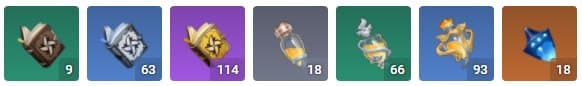 - اولین قدم برای این کار لول آپ و اسند کاراکتر هاست که به یه سری متریال هم نیاز داره شما اون متریال رو میتونید توی بخش زیر ببینید و برای فارم کردنشون اقدام کنید:
