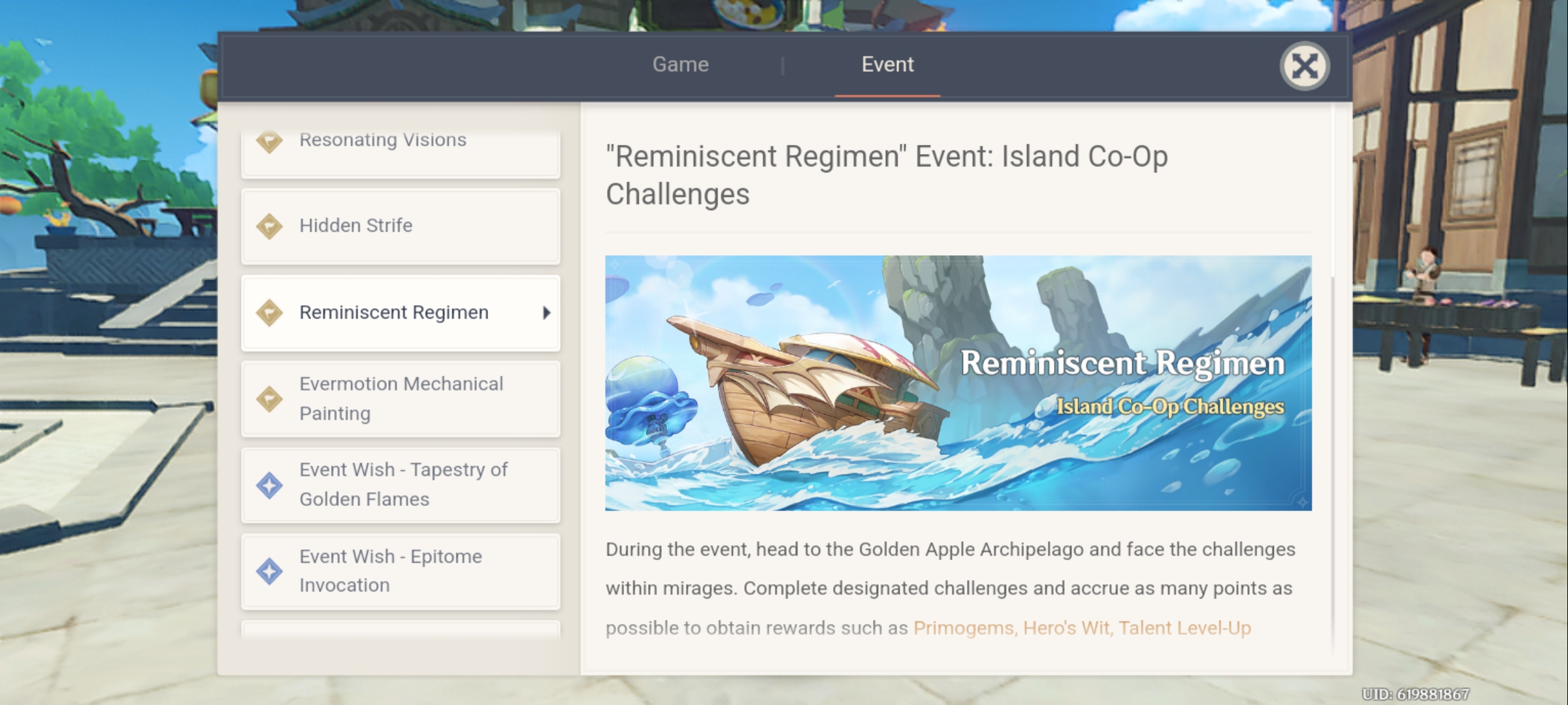 قبل از رسیدن ورژن 3.0، یادتون باشه که ایونت های مونده رو کامل کنید تا پریموجم های بیشتری بتونید جمع کنید برای بنر های جدید. ایونت Reminiscent Regimen بصورت Co-op هست و بعد از توضیحات هر مرحله برای بازی با سه نفر دیگه بصورت رندوم مچ میشید. این Co-op هم از سری ایونت های جذاب تابستونی هست که بزودی به اتمام میرسه. با هماهنگی و همکاری بیشتر بین اعضای تیم زودتر به مقصد برسید و مرحله رو کامل کنید. اگر امتیاز کامل 500 یا بالاتر رو بگیرید هر سه جایزه رو باهم خواهید گرفت که در هر مرحله 70 پریمو میده با جوایز دیگه.