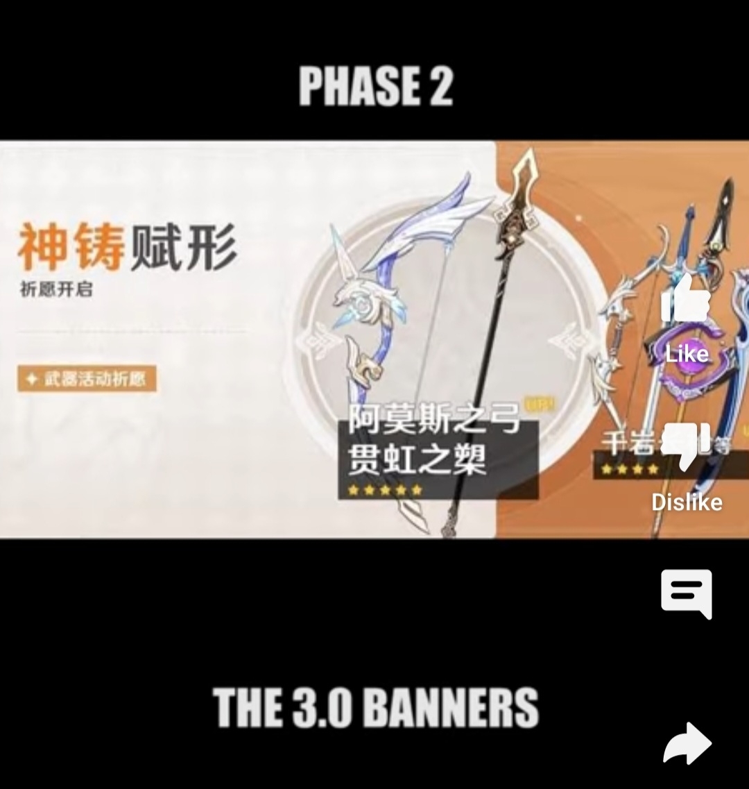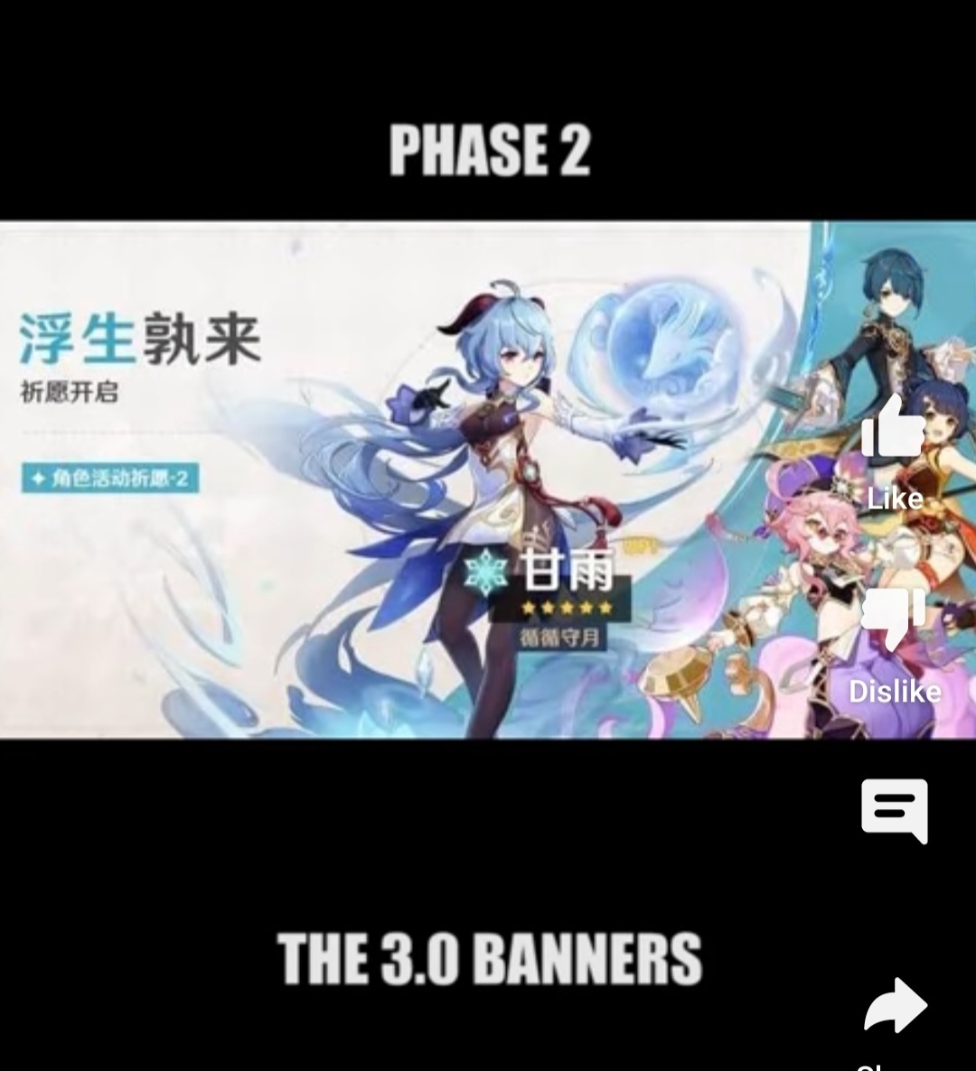 در ادامه به بنر هایی که در ورژن 3.0 ارائه خواهند شد میپردازیم که در بین اونا طبق خبر های درز یافته از سرور های چین نشون از ری ران دو شخصیت که خیلی ها خواستار شون هستن میدن. اولی ژانگلی و دومی گانیو. شرکت Mihoyo هنوزم بطور رسمی این رو اعلام نکرده ولی طبق ویدیو های منتشر شده نشون میدن که چه کسانی در بنر های 3.0 خواهند بود.